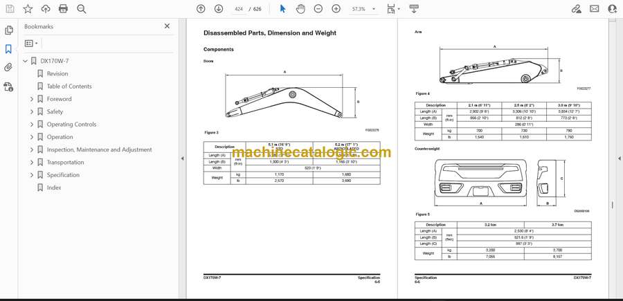 This DX170W-7 runs in rough spots—road jobs, utility work, tight urban sites—where you’re bouncing between travel and digging all day. This manual keeps you on a steady maintenance rhythm so the machine behaves the same on a Monday morning as it does at the end of a long week. You’ll trace little issues before they turn into tow-truck problems. Say you notice a slight steering wander and a slow boom response; the book walks you through what to check first—tires, hydraulics, joints—so you can isolate the fault instead of just throwing parts at it.