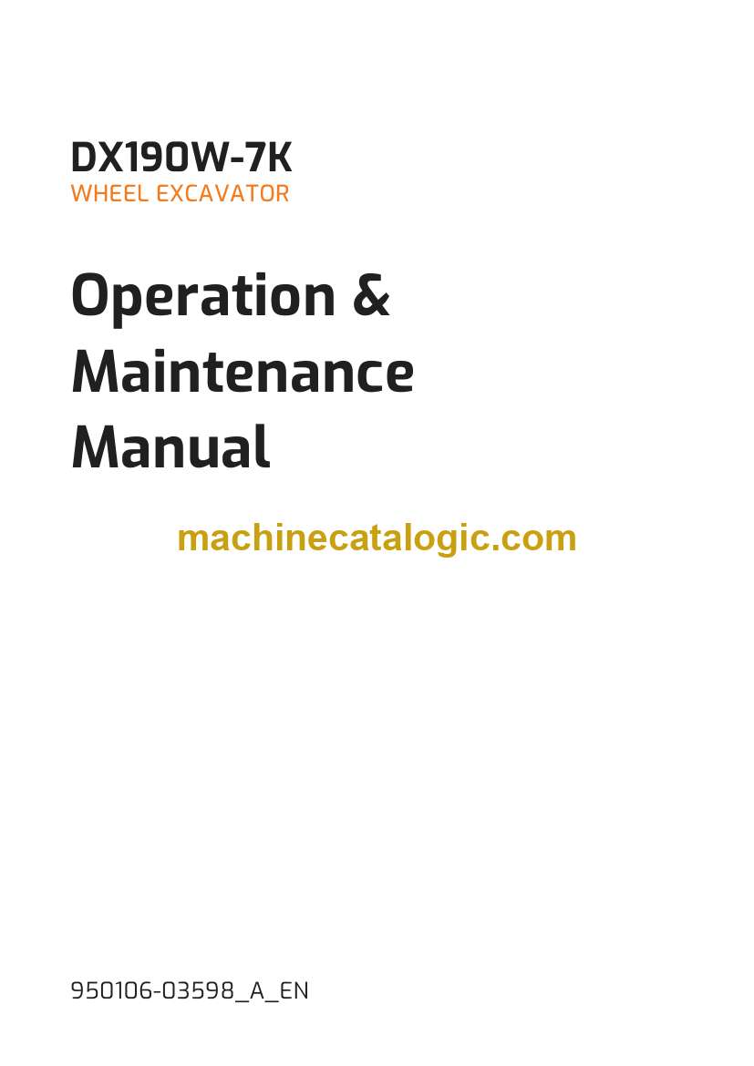 Develon DX190W-7K Wheeled Excavator Operation and Maintenance Manual (950106-03598_A_EN)