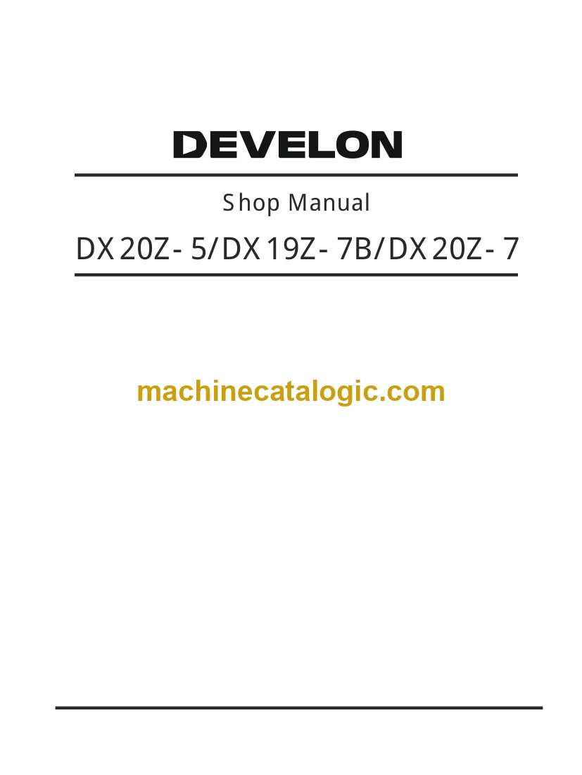 On a DX20Z-7 you’re usually working in tight spots—driveways, back yards, inside buildings—where downtime hurts and access is lousy. This shop manual’s what you use when you’re past simple filters and grease and you’re ready to tear in deep without guessing. It helps you plan the bench, lay out parts, trace faults, and then reassemble so you don’t end up with a mystery leak or a track that won’t stay aligned. Say you’ve got weak boom power: this is the book you grab to trace the hydraulic circuit, pull the pump, inspect the guts, then torque and bleed everything so it comes back right the first time.