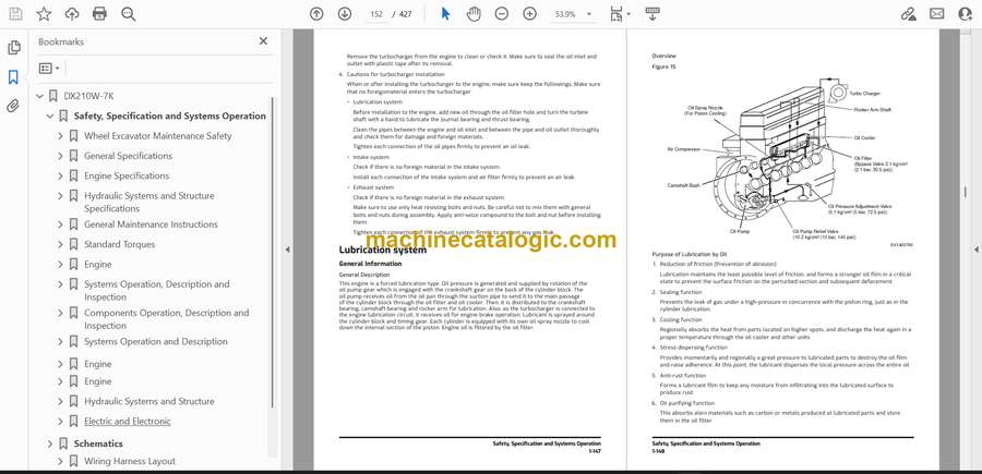 Out on road jobs, tight city sites, or utility work along shoulders, this DX210W-7K is your go‑to when you need excavator muscle that can move itself between spots. This shop manual is what you pull when you’re past basic maintenance and you’re ready to tear into systems properly—planning the job, laying parts out, and putting it all back so it tracks straight and runs clean. Say the boom swing feels sloppy: this is what you’d use to trace the play, strip the joint, inspect pins and bushings, then reassemble with the right torque sequence so it doesn’t bind or eat seals.