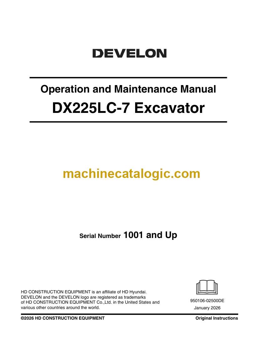Develon DX225LC-7 Crawler Excavator Operation and Maintenance Manual (950106-02500)