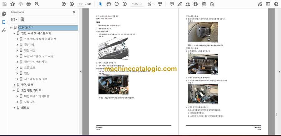 Develon DX240LCR-7 Excavator Shop Manual – Korean Language (한국어) (950106-02621_C_KO)