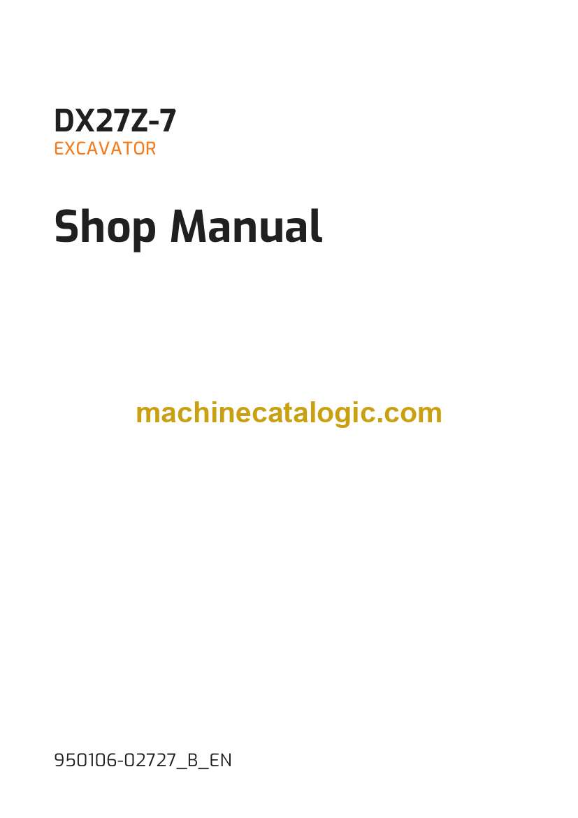 Develon DX27Z-7 Mini Excavator Shop Manual (950106-02727_B_EN)