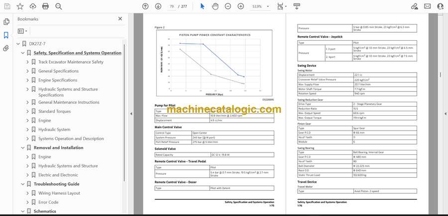 On a DX27Z-7 you’re usually working tight spots—driveways, trenches, landscaping, light utility work—often in mud, rock, or frozen ground. This shop manual’s what you’d use when you’re past quick fixes and need to tear in deep: swing, boom, travel motors, final drives, main control valve, pumps. It helps you plan the teardown, trace faults, inspect parts on the bench, then reassemble without guessing. Say your boom drifts and you’ve already swapped cylinders; this is where you’d go to isolate the control valve section, check clearances, and verify you’re putting every spool, shim, and O-ring back in the right stack.