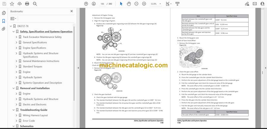 That DX27Z-7K usually lives in tight spots—driveways, landscaping jobs, small utility trenches—where you’re swinging close to fences, foundations, and parked cars. This shop manual’s what you’d use when you’re going past simple filters and grease, into major teardown and reassembly. Say your slew’s got a nasty clunk: this helps you plan the strip-down, trace the play, inspect the bearings and gear teeth, then reassemble without leaving a shim out or misaligning the housing.