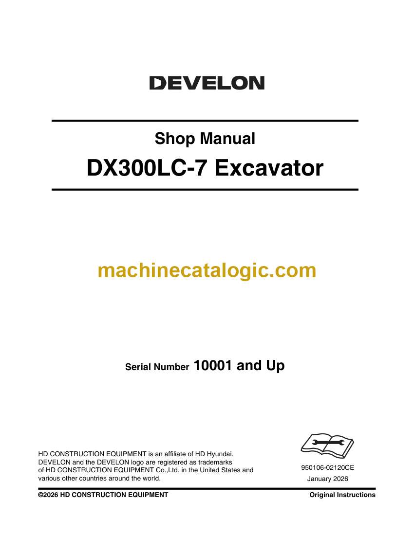 Develon DX300LC-7 Crawler Excavator Shop Manual (950106-02120CE) (10001 and Up)