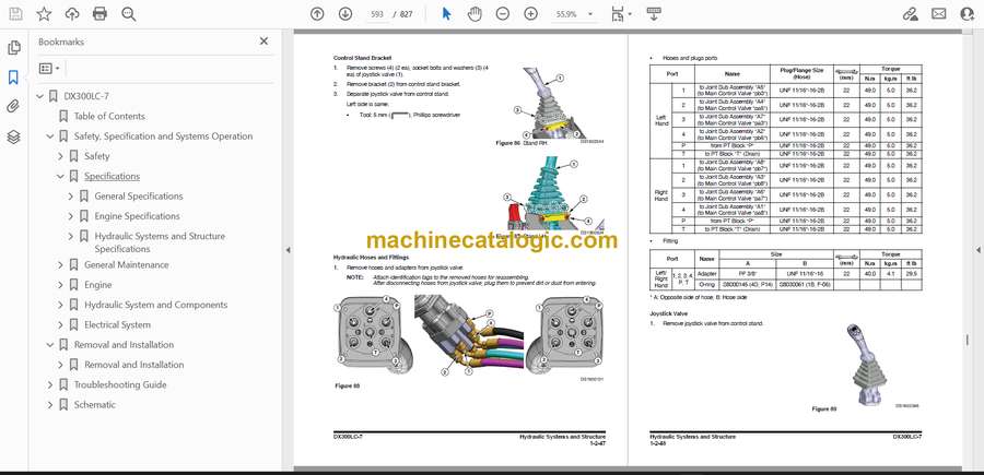 Out on pipe jobs, demo sites, or in the quarry, that DX300LC-7 is working hard in dust, mud, and cold starts. This shop manual’s what you’d use when you’re past quick fixes and need to tear in deep—swing motor off, final drives stripped, boom cylinders on the bench—and you want everything to go back on once, the right way. Say you’ve got a slow, noisy slew: you’ll trace the issue, pull the swing gearbox, inspect bearings and gear faces, then follow the manual’s torque sequence so you don’t preload anything and cook a fresh rebuild.