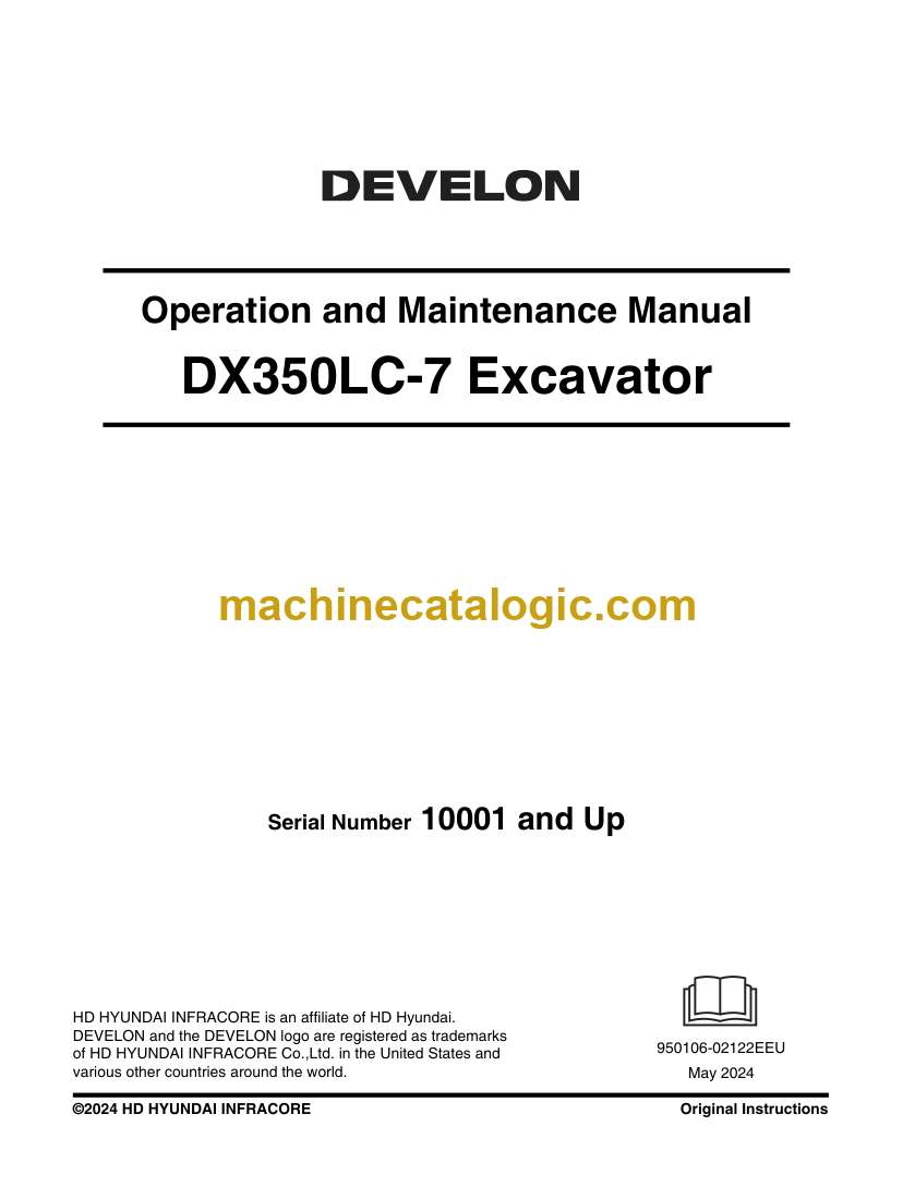 Develon DX350LC-7 Crawler Excavator Operation and Maintenance Manual (950106-02122EEU) (10001 and Up)