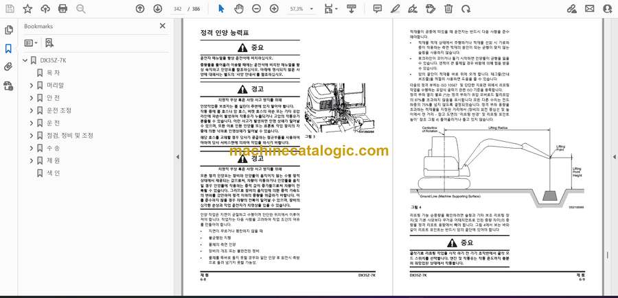 Develon DX35Z-7K Mini Excavator Operation and Maintenance Manual – Korean Language (한국어) (950106-04243A-KO)