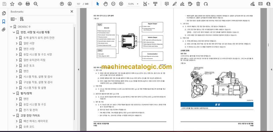 Develon DX360LC-9 Excavator Shop Manual – Korean Language (한국어) (950106-04097_A_KO)