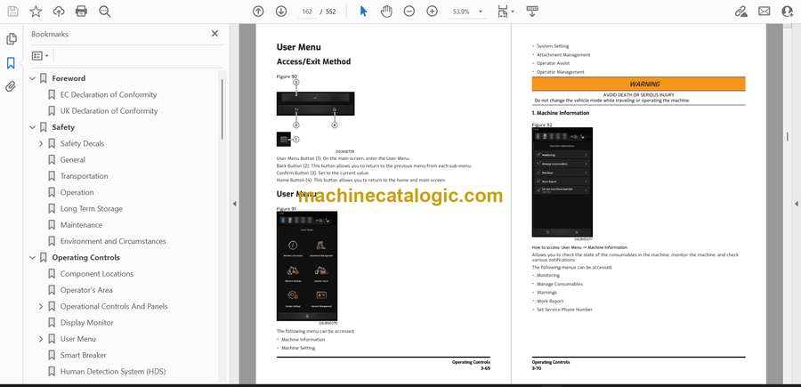 • Isolate odd noises or vibration by following the manual’s sequences to inspect pins, align attachments, and test swing and travel functions.