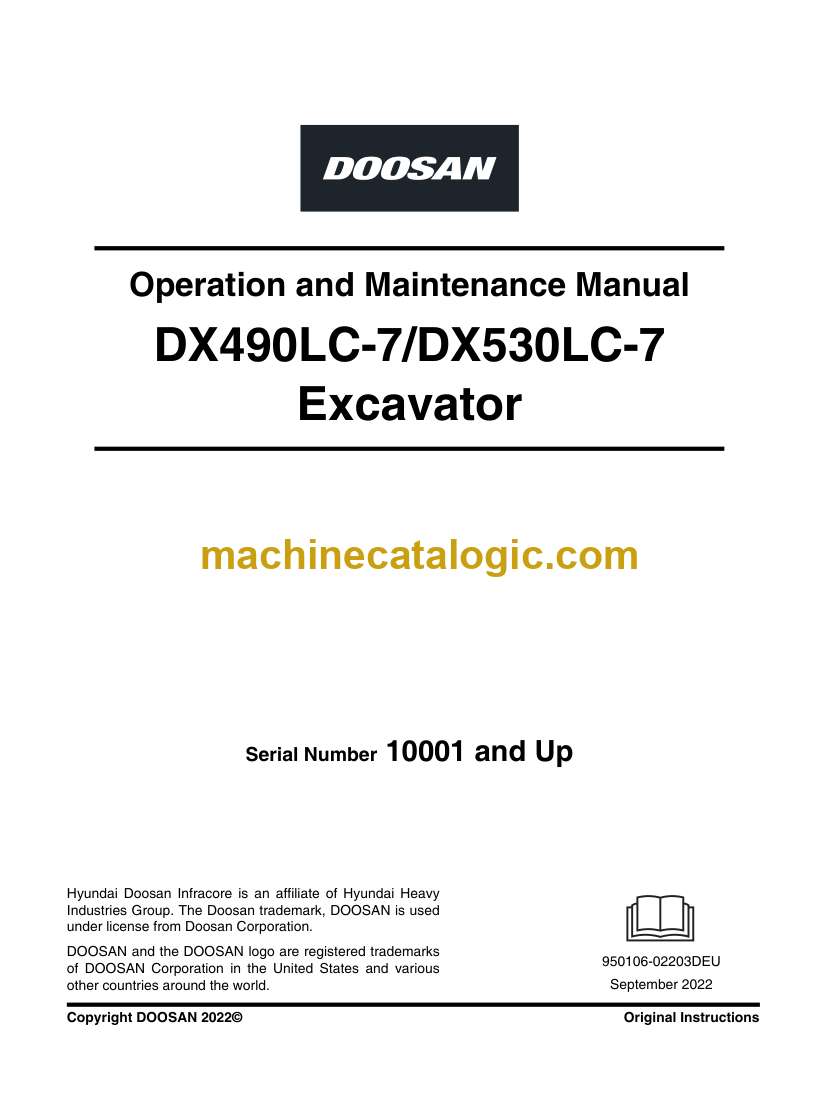 Develon DX490LC-7, DX530LC-7 Crawler Excavator Operation and Maintenance Manual (950106-02203DEU) (10001 and Up)