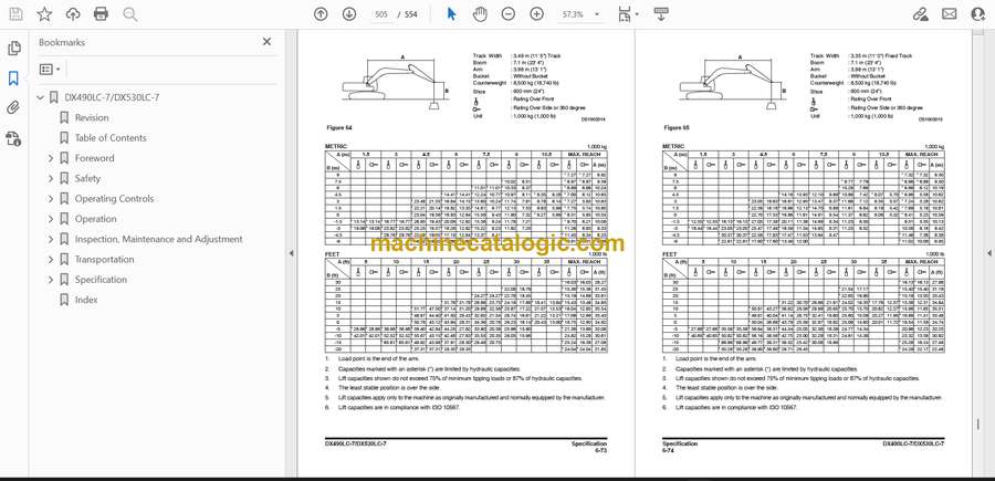 Develon DX490LC-7, DX530LC-7 Crawler Excavator Index: