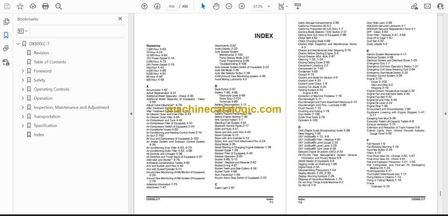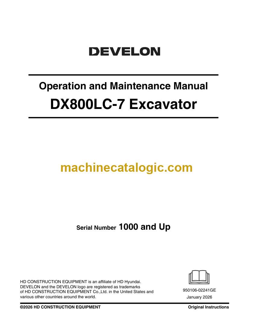 Develon DX800LC-7 Crawler Excavator Operation and Maintenance Manual (950106-02241GE) (1000 and Up)