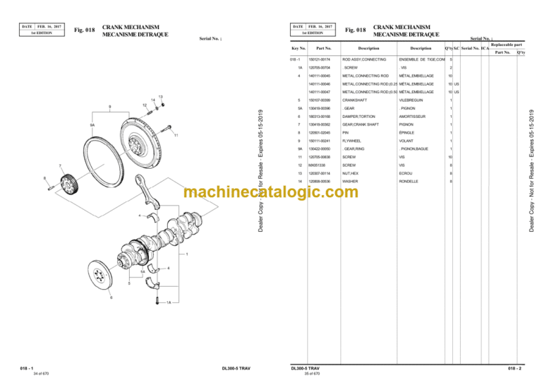 Doosan DL300-5TRAV Wheel Loader Parts Manual (Serial Number 10001 and Up)