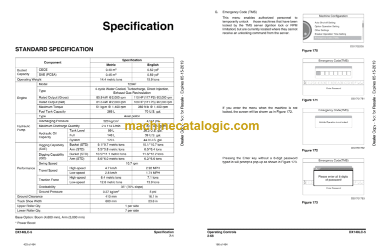 Doosan DX140LC-5 Excavator Operation and Maintenance Manual (Serial Number 1001 and Up)