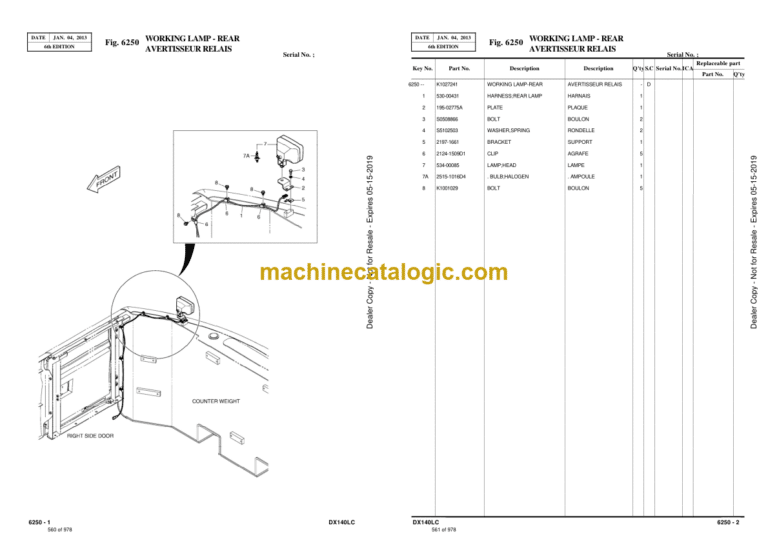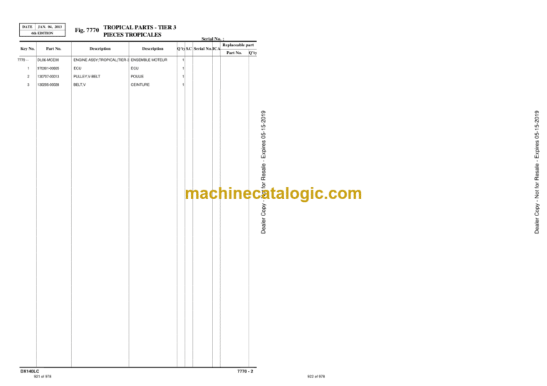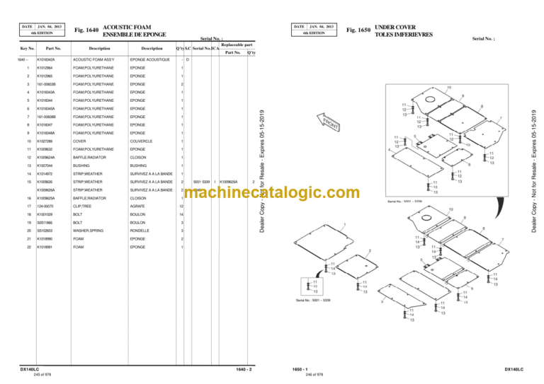 Doosan DX140LC Excavator Parts Manual (Serial Number 5001 and Up)