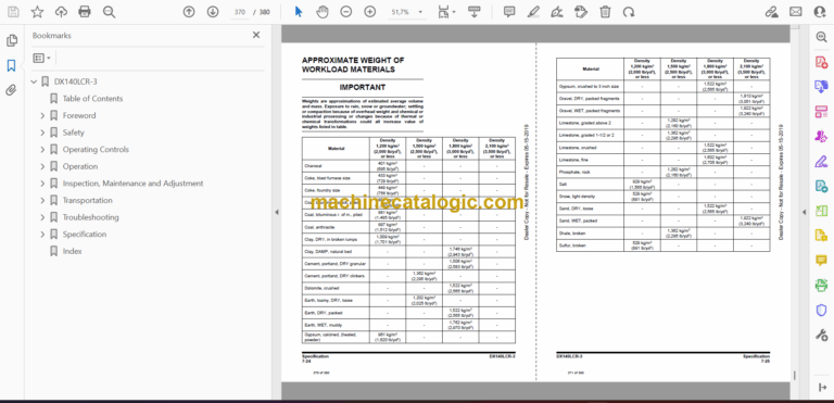 Excavator Rated Lift Capacity Tables