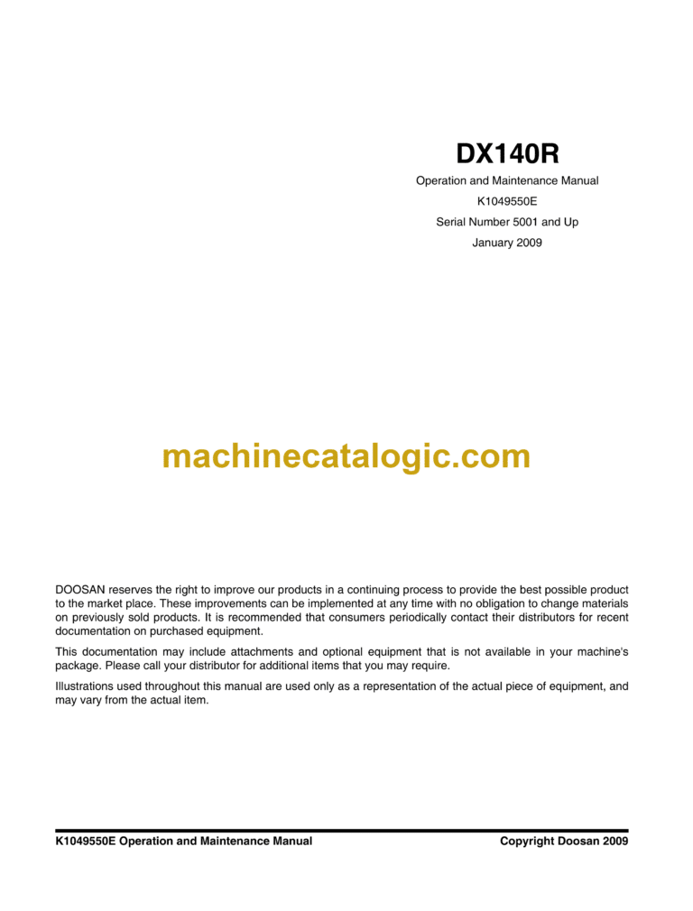 Doosan DX140R Excavator Operation and Maintenance Manual (Serial Number 5001 and Up)