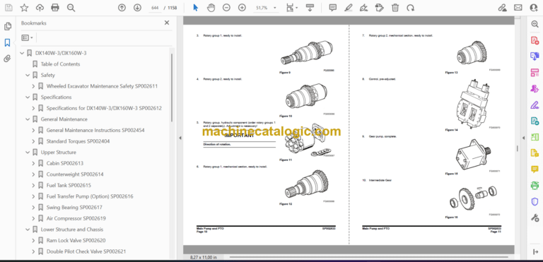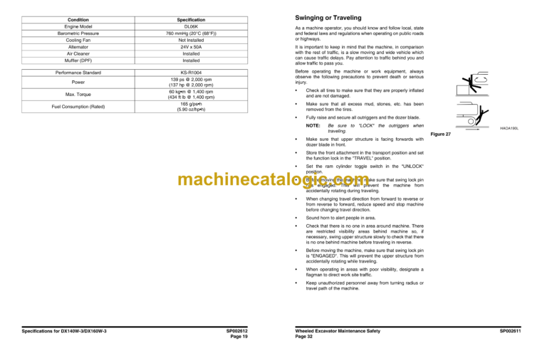 Doosan DX140W-3, DX160W-3 Wheeled Excavator Shop Manual (Serial Number 1001 and Up)