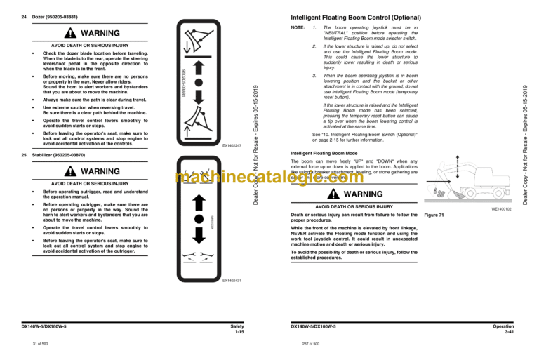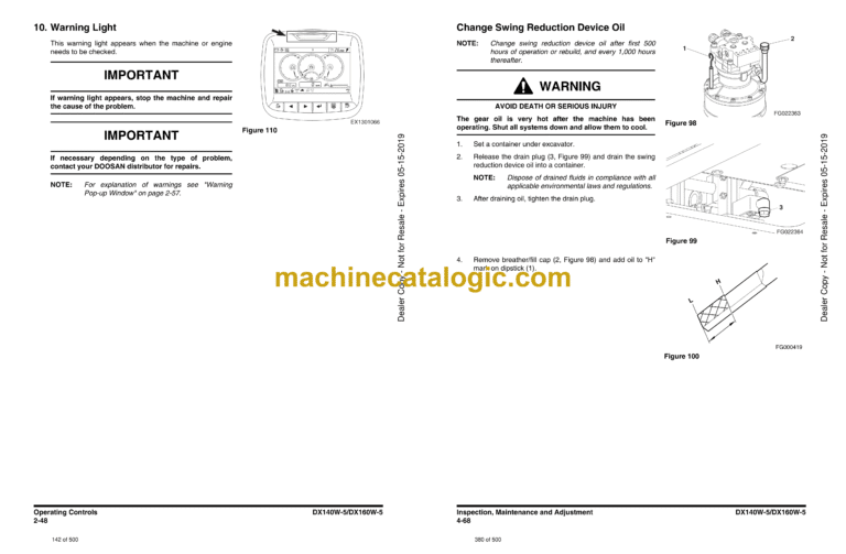 Doosan DX140W-5, DX160W-5 Wheeled Excavator Operation and Maintenance Manual (Serial Number 1001 and Up)