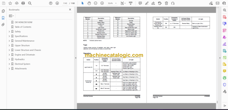 Doosan DX140W, DX160W Wheeled Excavator Index:
