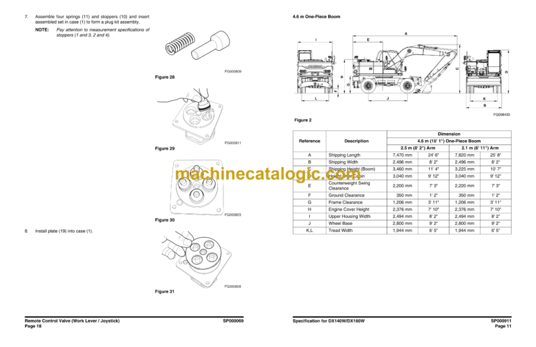 Doosan DX140W, DX160W Wheeled Excavator Shop Manual (Serial Number 5001 and Up)