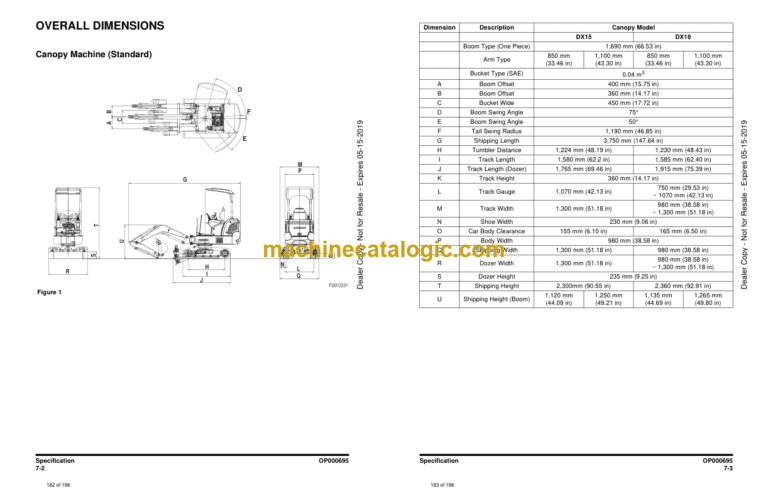 Excavator Rated Lift Capacity Tables………………………………………. 1-30