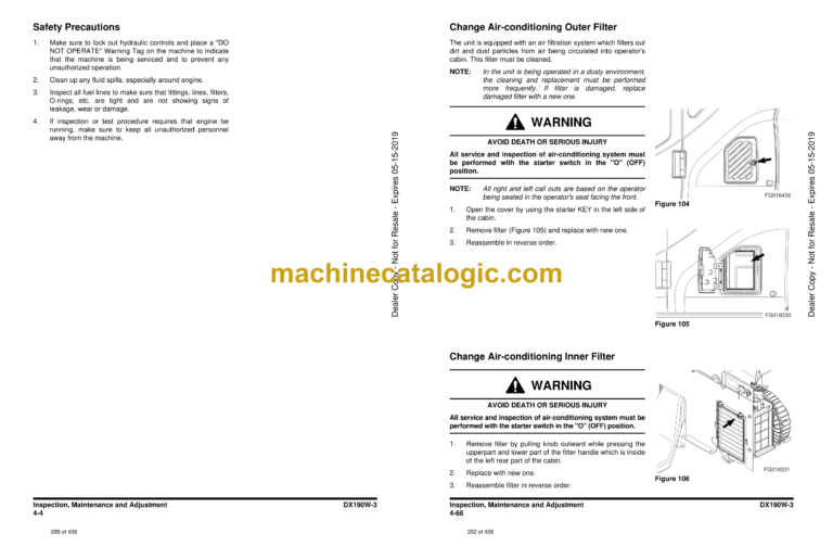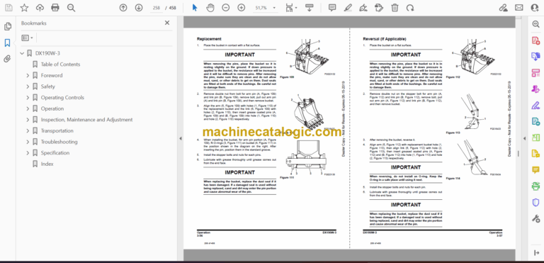 Doosan DX190W-3 Wheeled Excavator Operation and Maintenance Manual (Serial Number 1001 and Up)