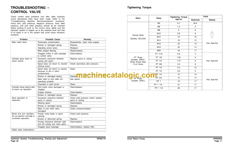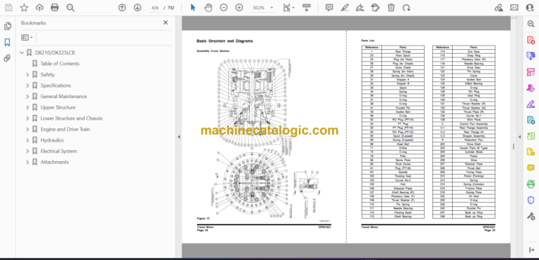 Doosan DX210, DX225LCB Hydraulic Excavator Index: