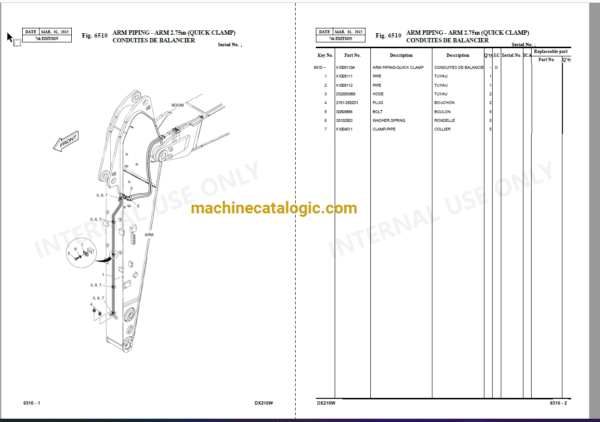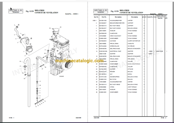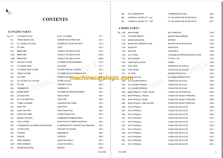 Doosan DX210W Tier 3 Excavator Parts Manual