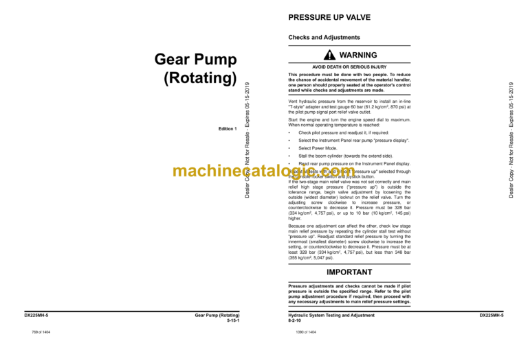 Doosan DX225MH-5 Material Handler Shop Manual (Serial Number 1001 and Up)