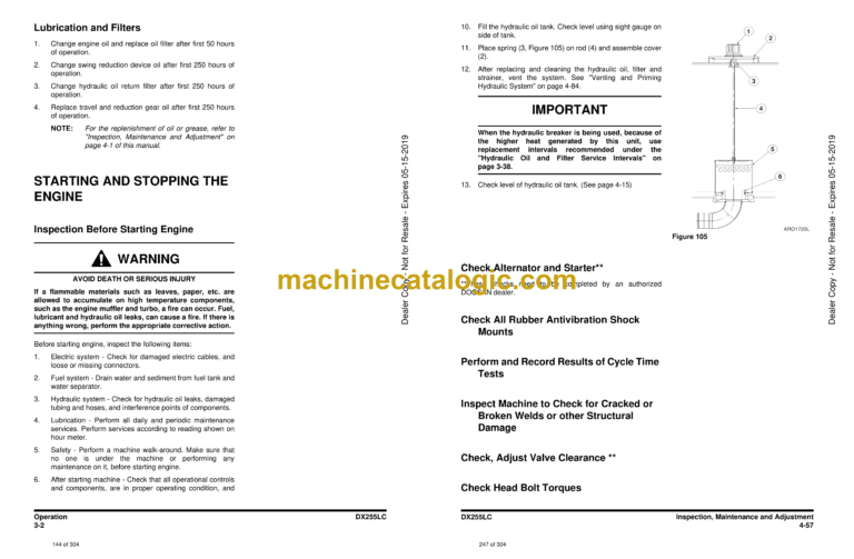 Doosan DX255LC Excavator Operation and Maintenance Manual (Serial Number 5150 and Up)