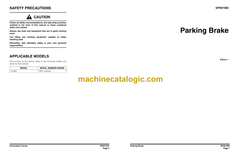Swing Reduction Gear……………………………………………………………….. SP001015