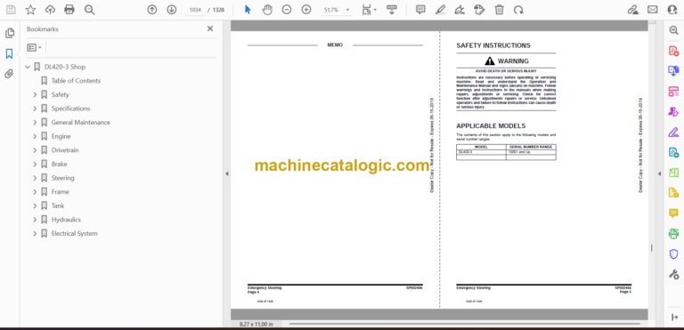 Doosan DX300 Crawler Excavator Shop Manual (Serial Number 5001 and Up)