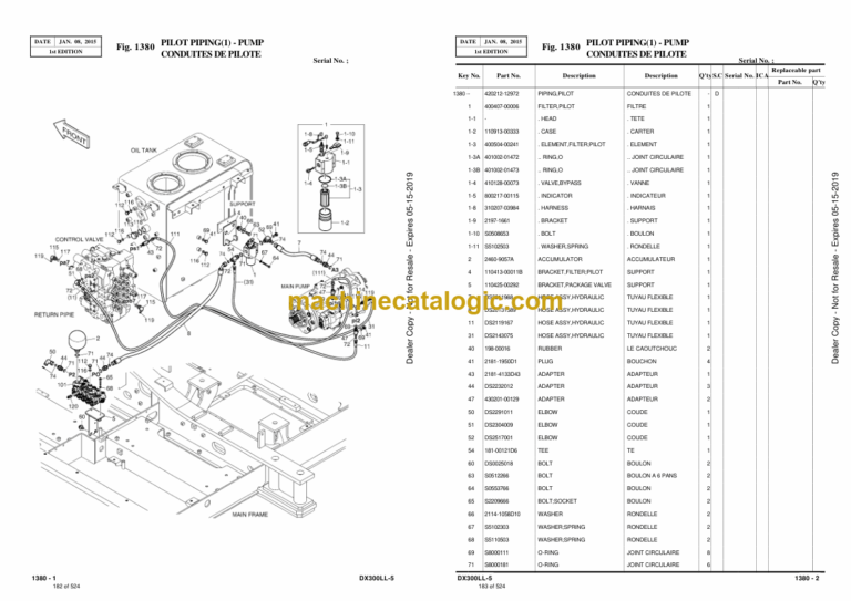 1270 PILOT PIPING – JOYSTICK(3 OR 4 SPOOL) CONDUITES DE PILOTE 1270-1