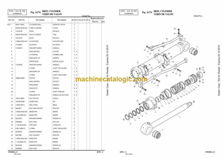 3580 LIFT CYLINDER VERIN DE LEVAGE 3580-1