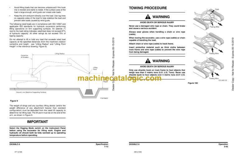 Excavator Rated Lift Capacity Tables