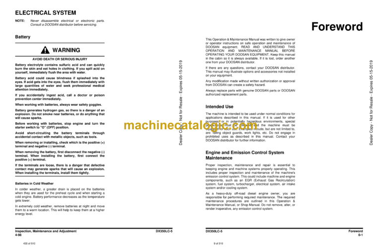 Doosan DX350LC-5 Excavator Operation and Maintenance Manual (Serial Number 20001 and Up)