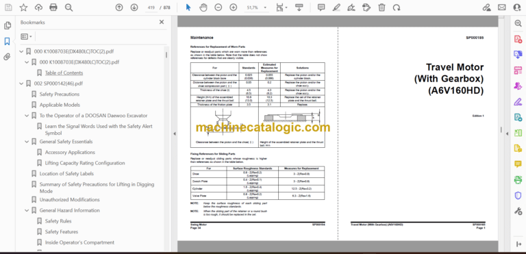 Doosan DX480LC, DX520LC Hydraulic Excavator Shop Manual (Serial Number 5001 and Up)