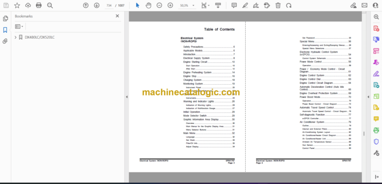 Doosan DX480LC, DX520LC Hydraulic Excavator Index:
