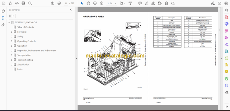 Model: DX490LC-3, DX530LC-3 Excavator