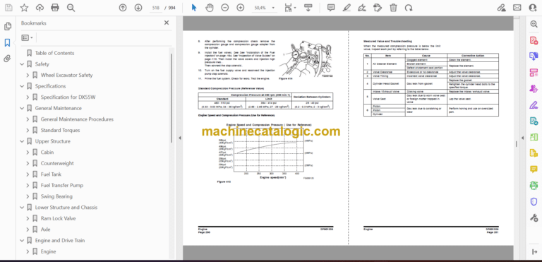 Doosan DX55W Wheeled Excavator Table of Contents: