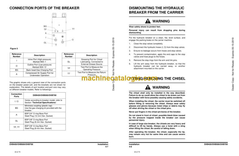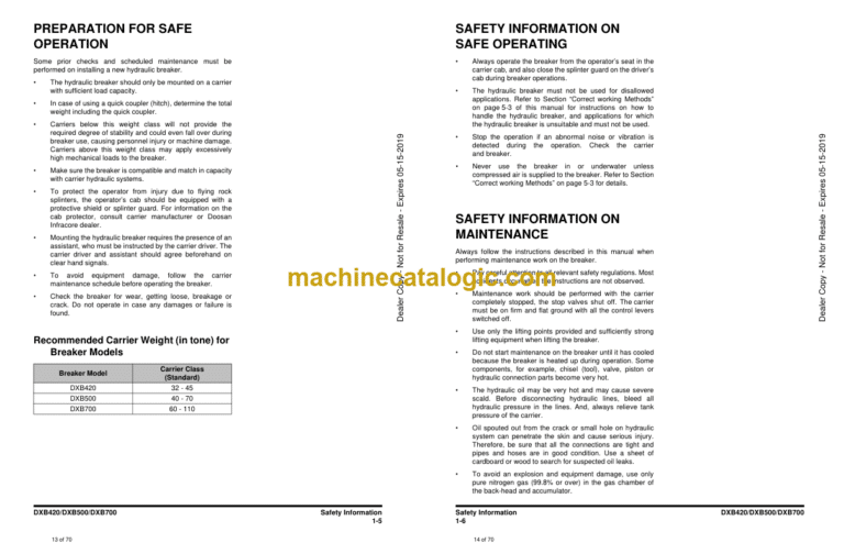 Doosan DXB420, 500, 700 Hydraulic Breaker Index: