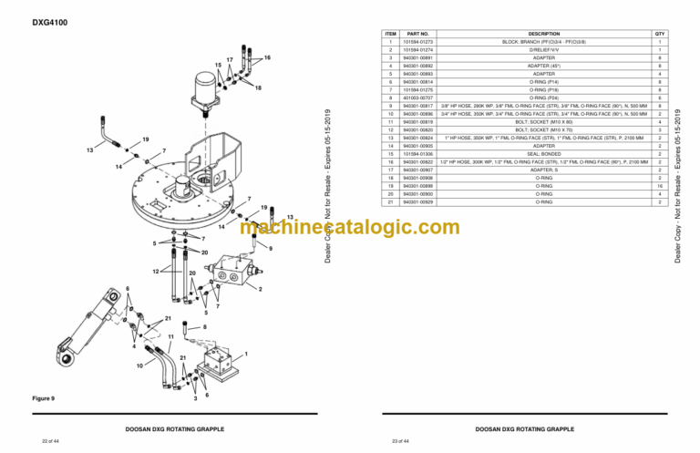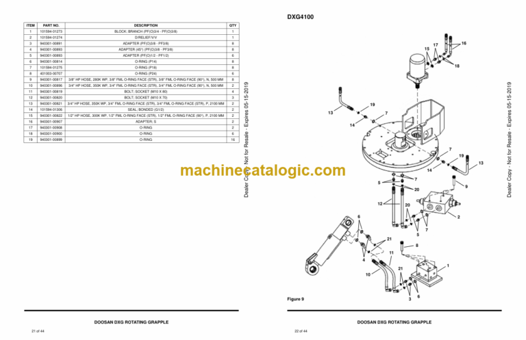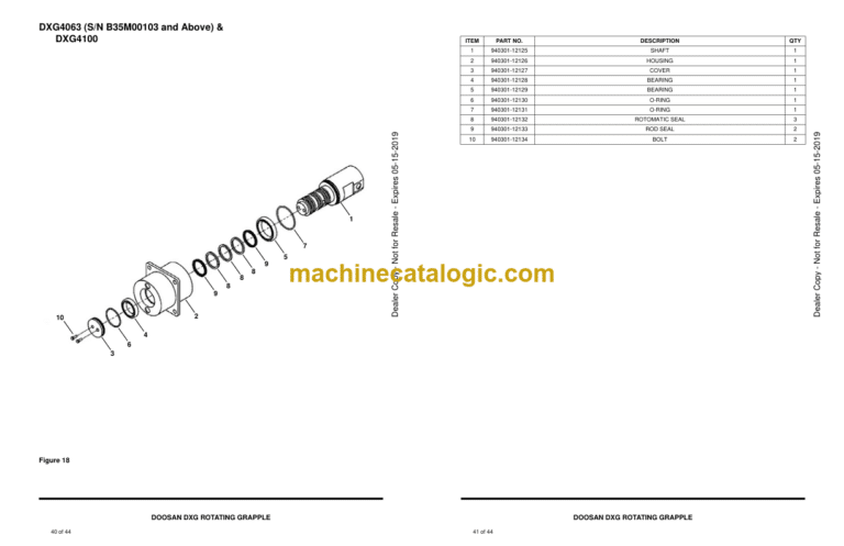 Doosan DXG Rotating Grapple Parts Manual (Serial Number DXG4063 – Serial Number B35M00101 and Up DXG4100 – Serial Number B35N00101 and Up)