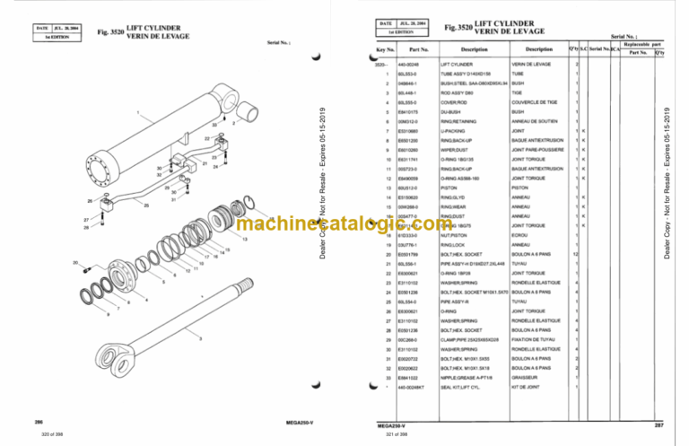3580 LIFT CYLINDER VERIN DE LEVAGE 3580-1