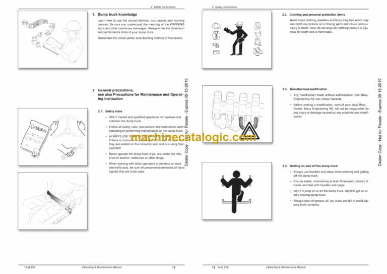 Operating the dump truck ……………………………………. 93