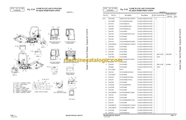 Doosan S015 Plus, S018-VT Excavator Parts Manual (Serial Number 30001 and Up)