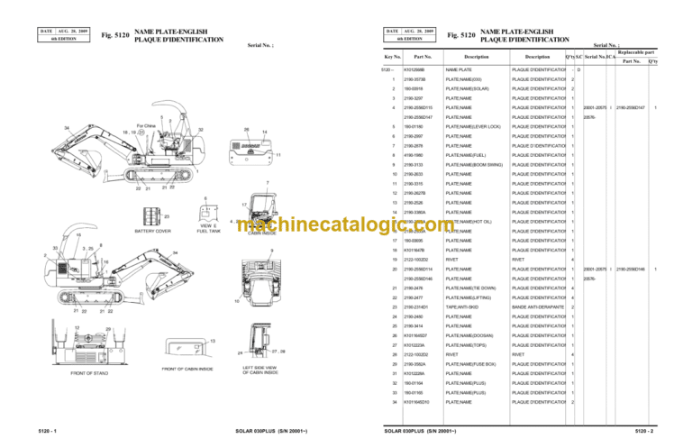 Doosan S030P Mini Excavator Parts Manual (Serial Number 20001 and UP)