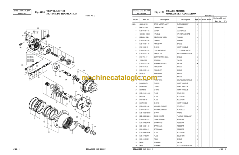 Doosan S035 Mini Excavator Parts Manual (Serial Number 20001 and UP)